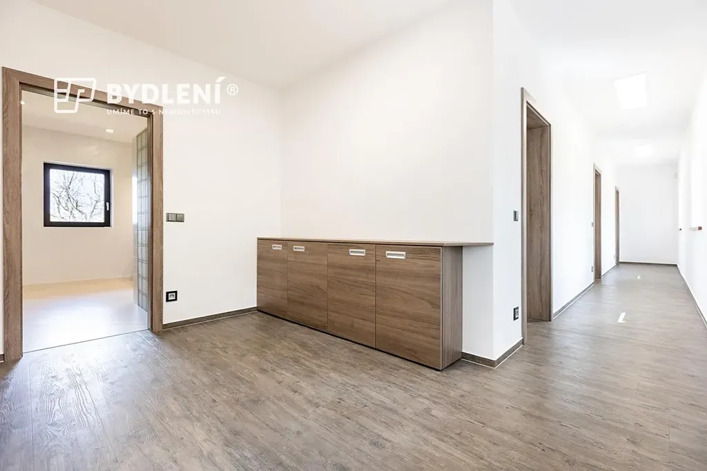 Dispozice, která roste s vámi: Interiér nabízí 7 pokojů a dvě nadstandardní koupelny. Nová část (2020) zahrnuje tři pokoje s vlastní terasou a hlavní ložnici s prostornou šatnou. Původní část doplňuje dispozici o další dvě ložnice či pracovny. Konstrukce je navíc připravena na budoucí rozvoj. Obývací pokoj počítá s umístěním schodiště pro vybudování dalšího patra, nebo lze dům snadno rozdělit na dvě samostatné jednotky.