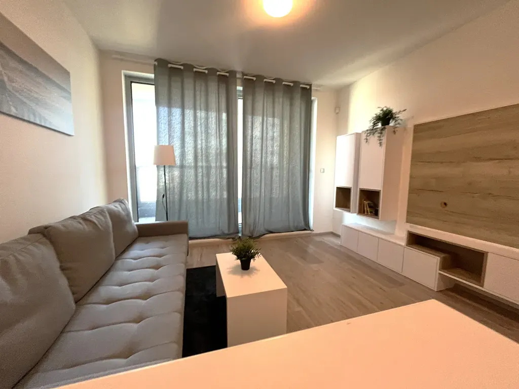 Bytová jednotka s podlahovou plochou 33 m2 se nachází v 6. NP. K bytu naleží balkon a sklep. Jednotka disponuje prostorným obývacím pokojem, vybaveným novou značkovou vestavěnou kuchyňskou linkou včetně kvalitních spotřebičů. Byt se pronajímá zařízený. Koupelna má sprchový kout, pračku a je spojená s WC. Předsíň nabízí instalovanou šatní skříň .Celý objekt působí velmi atraktivně a útulně, nachází se v blízkosti centra a zároveň nabízí harmonické podmínky pro bydlení. Bytový komplex je zabezpečen kamerovým systémem.