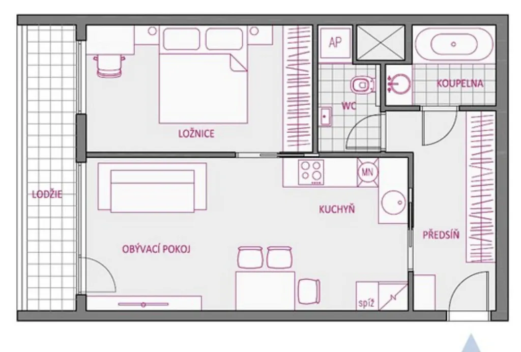 Celková užitná výměra bytu činí 53 m². Podlahová výměra je 46 m² + lodžie o výměře 7 m². K bytu náleží sklepní kóje.