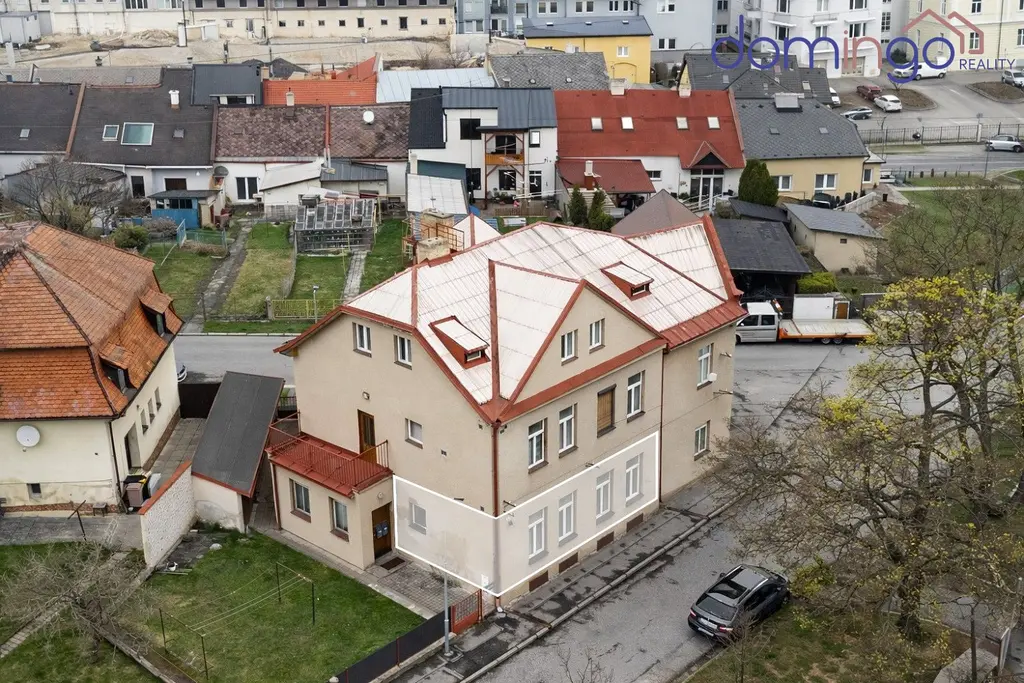 Velkou výhodou je dostatek úložných prostor – k bytu náleží prostorný sklep o velikosti 7,2 m². K dispozici je také sdílená půda, sušárna a dřevěná kolna vhodná na kola, sportovní vybavení nebo nářadí. U domu lze navíc využívat travnatý pozemek ve vlastnictví města.