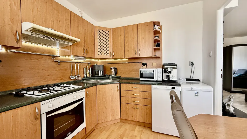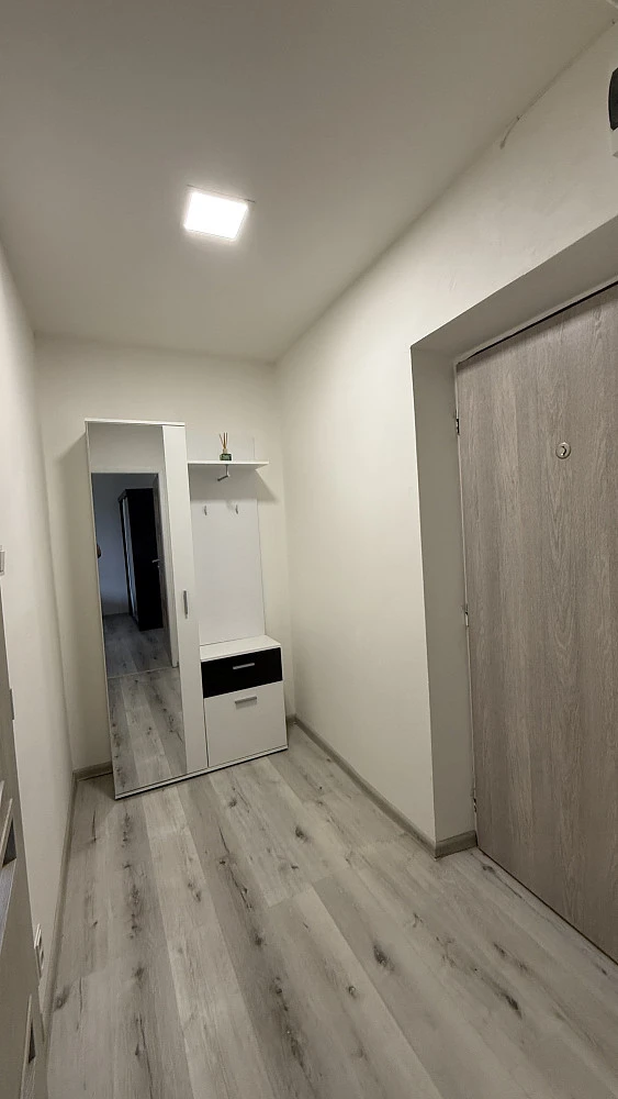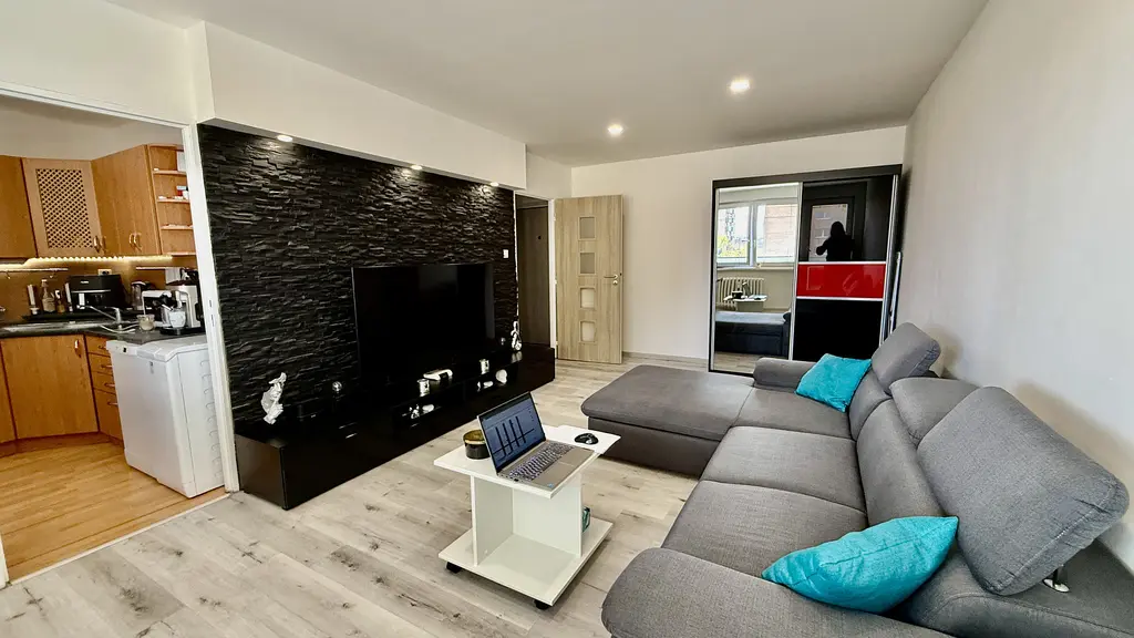 Byt působí vzdušně a díky umístění ve vyšším patře je krásně prosvětlený po celý den. Velkým benefitem je balkon s výhledem na obchodní centrum Futurum, ideální pro ranní kávu nebo večerní odpočinek.