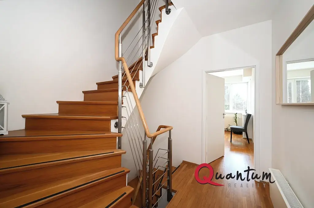 Exkluzivně nabízíme k pronájmu řadový rodinný dům o dispozici 5+kk, s užitnou plochou 185 m² a zahradou o výměře 154 m² se zahradním domkem. Dům je situovaný v žádané lokalitě Praha 5 – Jinonice, v bezprostředním sousedství mezinárodní německé školy. Dům se nachází v klidné ulici, která je soukromou komunikaci jen pro rezidenty, což zajišťuje minimum provozu.
