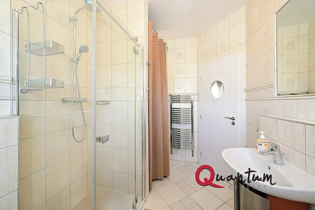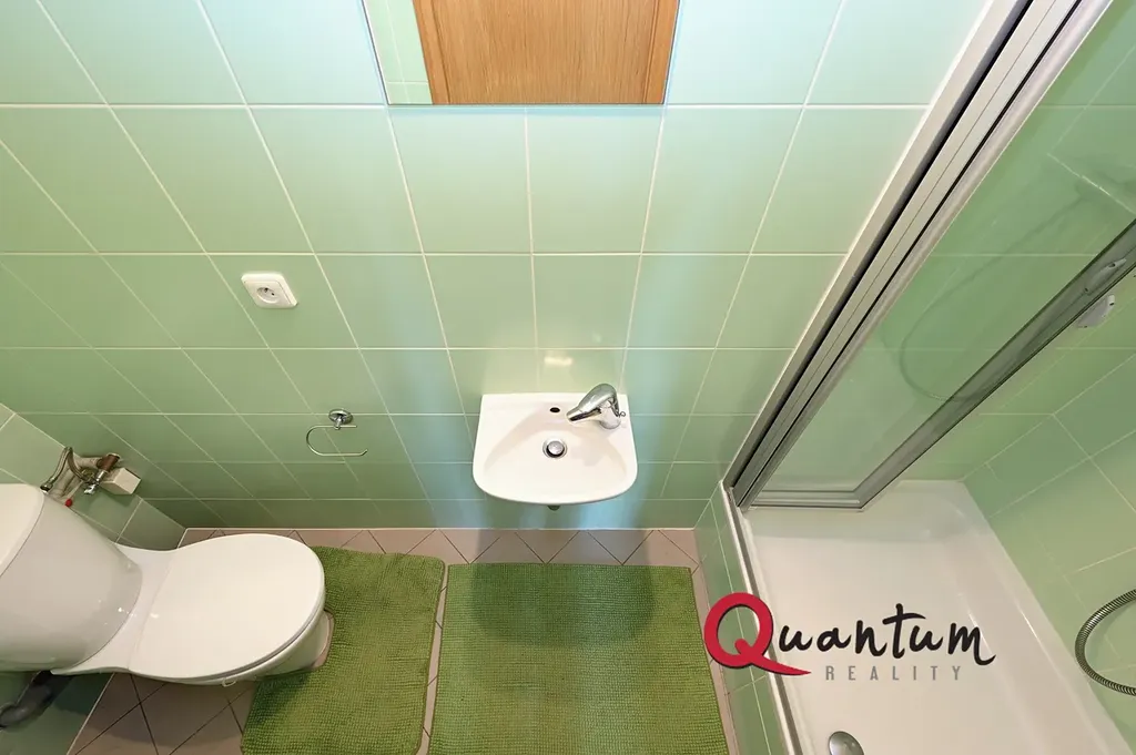 V 1. patře je k dispozici světlý a prostorný obývací prostor s novou plně vybavenou kuchyní s krásným výhledem. Z obývacího pokoje je vstup na balkon. Na tomto podlaží se dále nachází další místnost a koupelna se sprchovým koutem a toaletou.