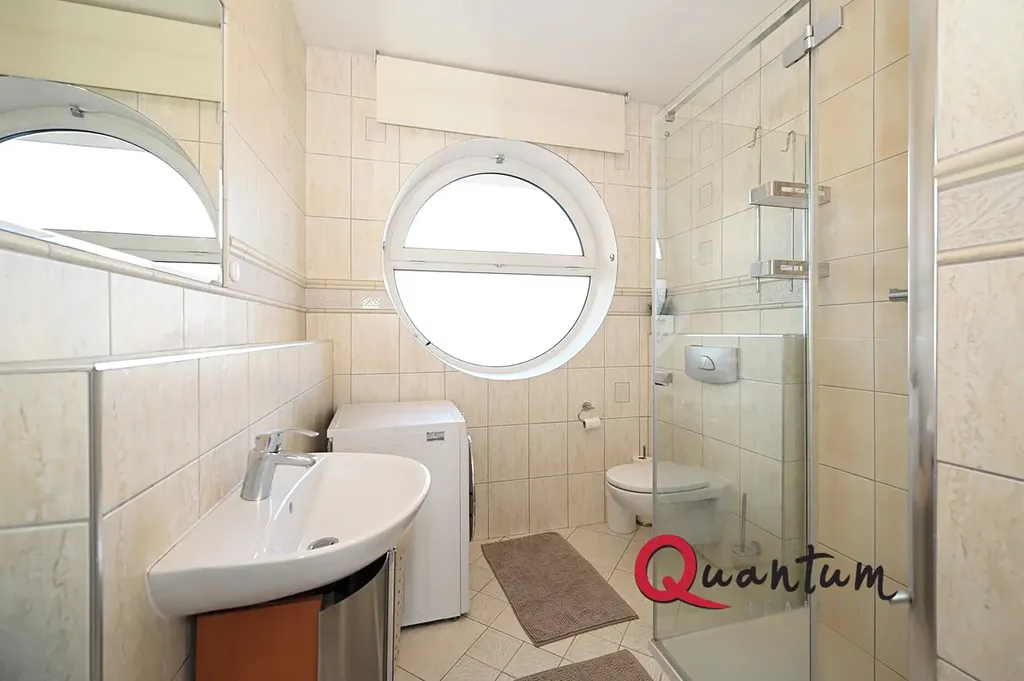 Ve 2. patře je umístěna hlavní ložnice s vestavěnými skříněmi a vstupem na balkon, další ložnice se šatnou a rovněž se vstupem na balkon a koupelna s vanou a toaletou.