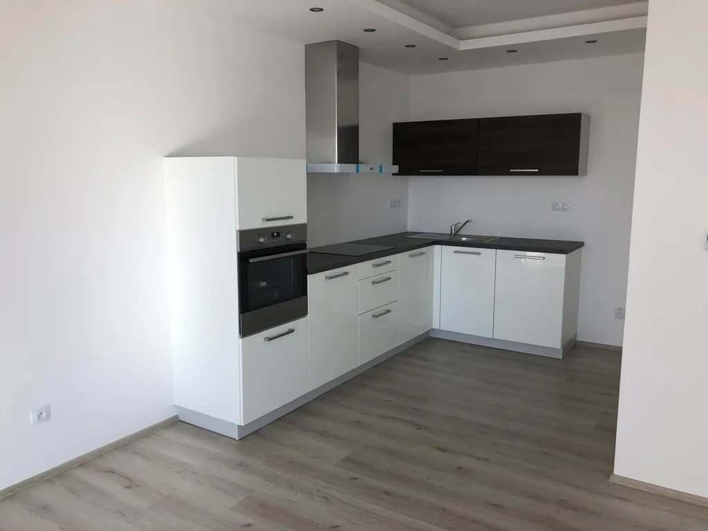 Stávající vybavení bytu: kuchyň.kout s elektr.troubou, sklokeram.varnou deskou, digestoří. Lednici nutno mít vlastní, přípojka na myčku je.