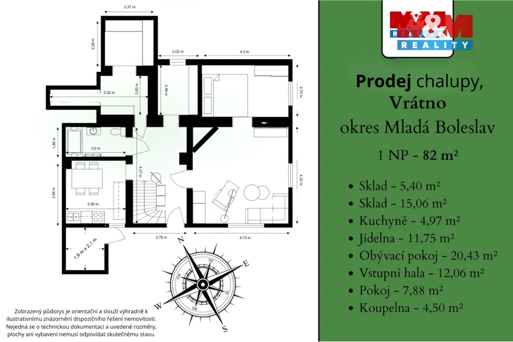 Nabízíme k prodeji samostatně stojící chalupu v klidné části obce Vrátno, okres Mladá Boleslav, která je ideální volbou pro rekreační využití. Nemovitost nabízí dostatek soukromí, prostoru i klidu. Chalupa disponuje užitnou plochou 149 m² na pozemku o celkové výměře 472 m². Budoucím majitelům nabízí možnost upravit si chalupu přesně podle vlastních představ. Výhodou jsou již provedené nové rozvody vody a elektřiny. Chalupa je napojená na obecní vodovod, odpad je řešen jímkou a je zde plánovaná výstavba nové obecní kanalizace. Vytápění zajišťují krbová kamna na tuhá paliva, doplněná jsou elektrickými přímotopy. Součástí chalupy je garáž, dílna a sklep. Pokud hledáte chalupu s atmosférou, potenciálem a možností vytvořit si vlastní víkendové útočiště, tato nabídka stojí za vaši pozornost. Pro více informací nebo domluvení prohlídky kontaktujte makléře.