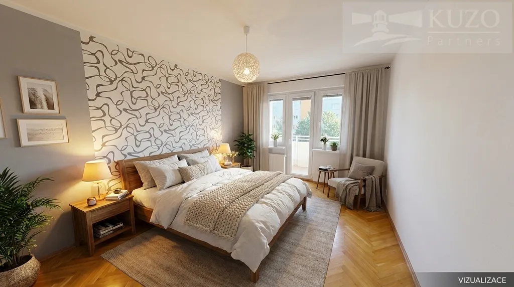 Prostorná ložnice: Klidná místnost s výstupem na vlastní balkon.