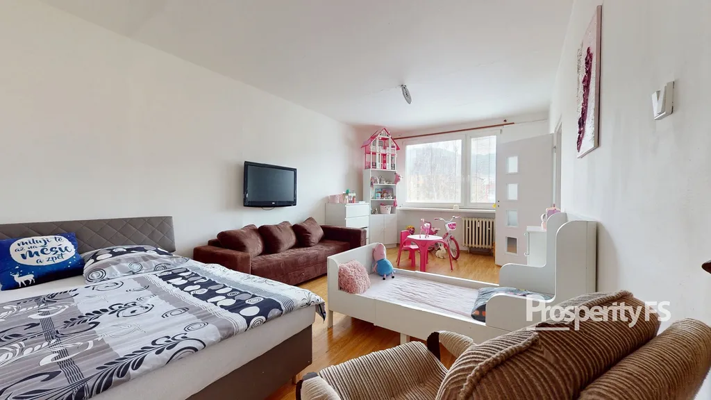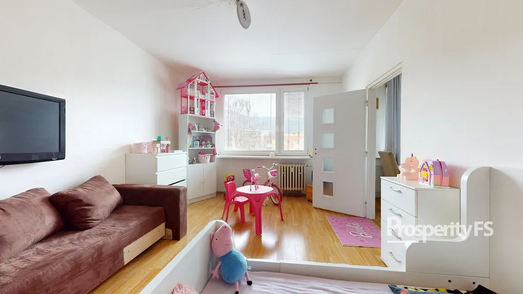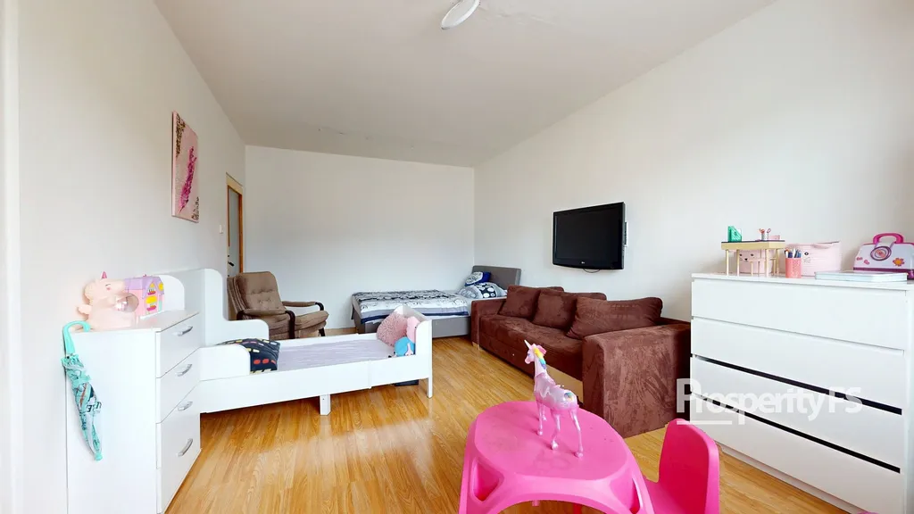 Dispoziční řešení bytu nabízí vstupní chodbu, prostorný obývací pokoj, kuchyň, ložnici a koupelnu s toaletou. Nabízený byt je v původním stavu, má umakartové bytové jádro, plastová okna. Podlahovou krytinu tvoří plovoucí podlaha v kombinaci s PVC. Velmi nízké měsíční náklady, lze získat na prohlídce. K bytu náleží sklepní kóje.