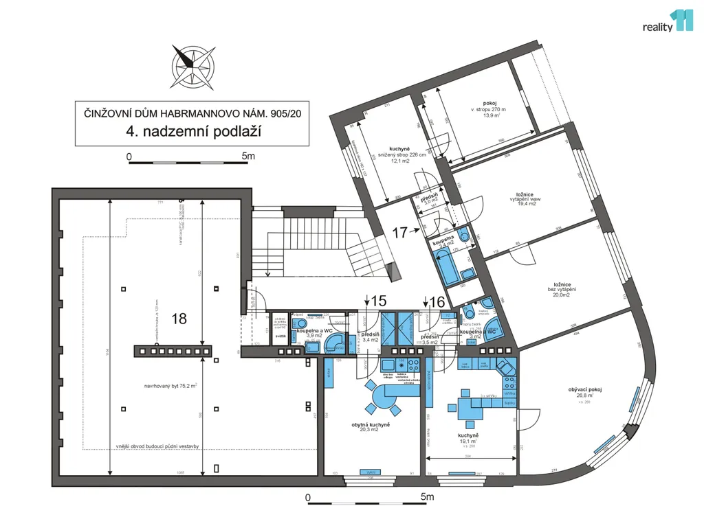 Reality 11 Vám zprostředkují prodej velkého bytového domu s komerčními prostory (celkem 22 jednotek), v Plzni - Doubravce, na nároží Habrmannovo náměstí a Masarykovy ulice. Čtyřpodlažní dům o celkové užitné ploše 1343 m² disponuje sedmnácti byty o dispozici 2+kk a 1+kk, čtyřmi komerčními prostory s vchodem z Masarykovy ulice (banka, kosmetický salon, pojišťovací kancelář, vinotéka), jedním komerčním prostorem v suterénu domu (kadeřnictví) a půdou ve IV. podlaží s projektem podkrovní vestavby bytu 3+kk. V suterénu domu se dále nachází sklepní kóje k bytům a další skladovací prostory pro správu domu.