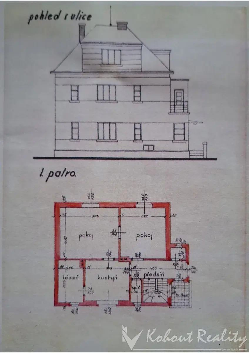 Přízemí: byt 2+1 (cca 65 m2) s chodbou a příslušenstvím, možnost úpravy na moderní 3+kk s terasou a přímým vstupem na zahradu