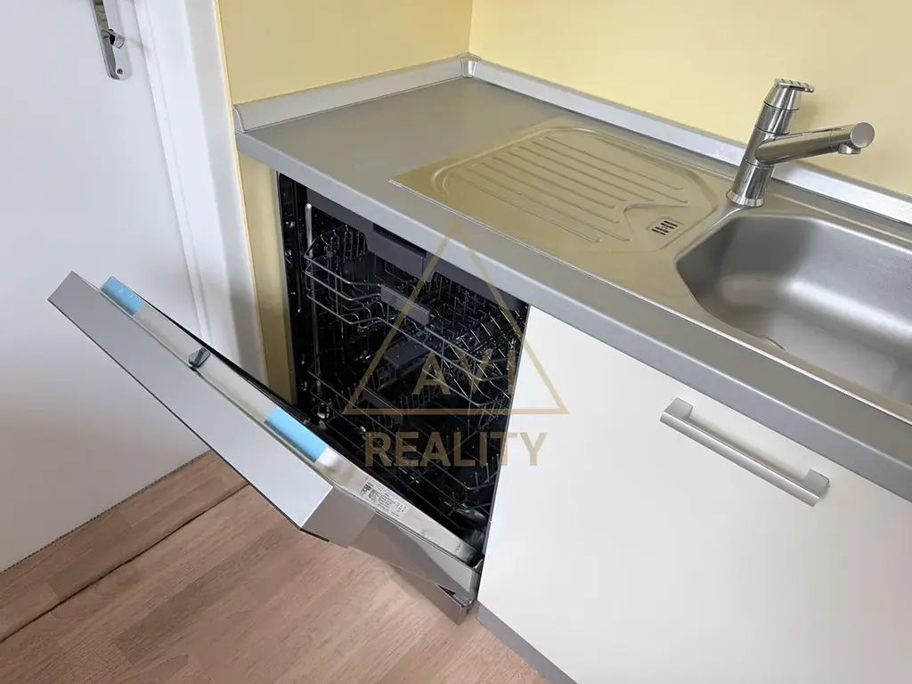 Obývací pokoj a kuchyně jsou řešeny velmi funkčně, byt nabízí dostatek úložných prostor.