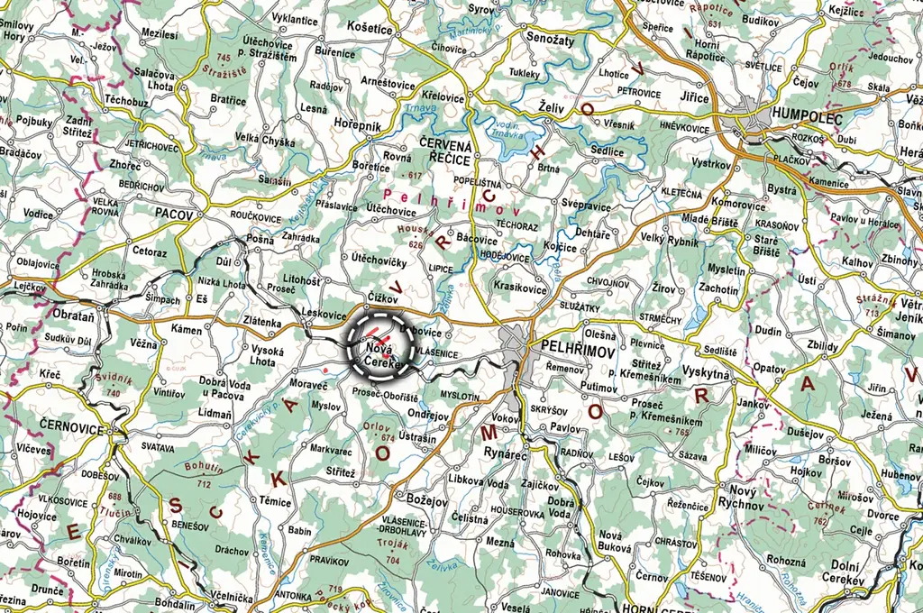 Katastrální území Nová Cerekev, výměra 34 438 m2