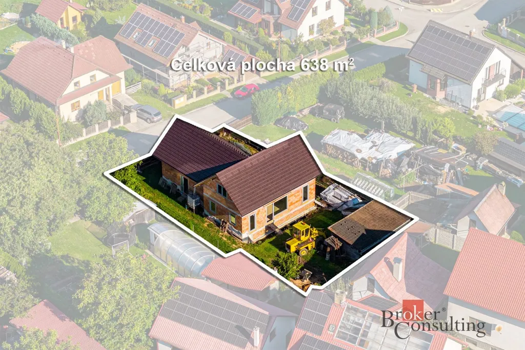 Dům je rozestavěný – hotová je hrubá stavba, krov, střecha a osazená plastová okna včetně vstupních dveří. Použity byly cihly HELUZ a kvalitní stavební materiály. Vnitřní příčky jsou provedené částečně a dokončení interiéru už bude na budoucím majiteli.