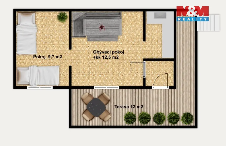 Nabízíme k prodeji velice pěknou chatu v obci Loutí u Rabyně v krásné osadě Zelené údolí. Jedná se o vyhledávanou rekreační lokalitu u Slapské nádrže. Chata je postavena v mírném svahu a nabízí dvě nadzemní podlaží se čtyřmi místnostmi. V 1. NP jsou dva samostatné pokoje, v jednom z nich jsou krbová kamna s rozvodem do radiátorů, dále koupelna se sprchovým koutem a toaletou a spíž. Přes schody a terasu s nádherným výhledem se dostaneme do 2. NP, kde je obytný pokoj s kuchyňským koutem a další ložnice. Pozemek o výměře 371 m² poskytuje dostatek soukromí a prostoru pro zahradu či relax. Je zde k dispozici kryté parkovací stání a posezení s grilem. Nemovitost je v dobrém stavu a lze ji okamžitě užívat. Nádherné okolí nabízí spoustu vyžití, od koupání na travnatých nebo písečných plážích, rybaření, pěší i cyklistické výlety či návštěvu lanového parku. V centru Prahy jste za necelou hodinku a můžete si tak užívat přírodní krásy jedné z našich nejkrásnějších lokalit.