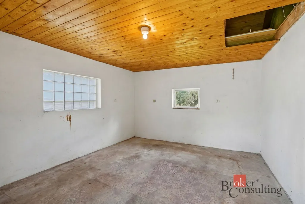 Dům má vlastní studnu a odpad je sveden do septiku. Nechybí ani menší sklep.