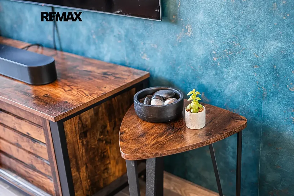 Interiér je moderní, čistý a má svůj rukopis: kombinace dřeva, tlumených tónů a výrazných akcentů působí současně, ale ne okázale.