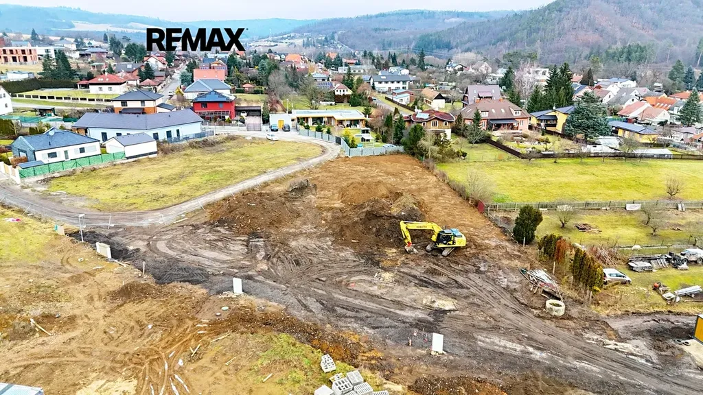 Probíhají poslední terénní úpravy a dokončují se příjezdové komunikace, takže pozemek bude připraven k okamžitému využití.