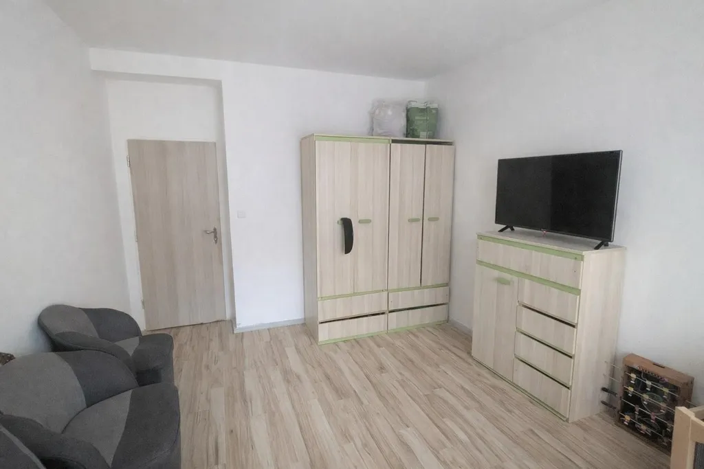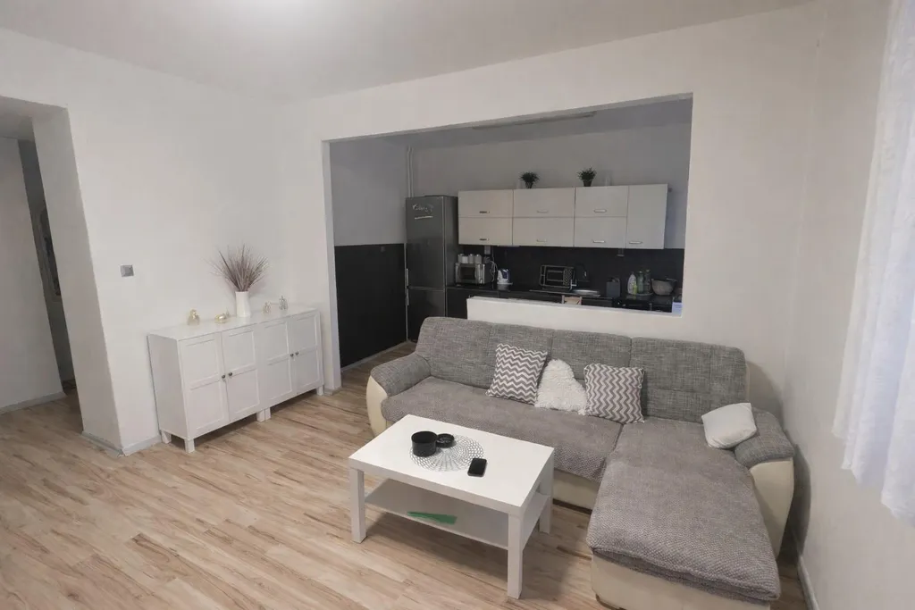 V kuchyni je hezká kuchyňská linka s elektrickými kamny. Obývací pokoj a kuchyň jsou odděleny příčkou. Koupelna vybavena vanou a obložena vkusnými obklady, přípojka na pračku připravena a WC odděleno. Celý byt působí prostorně a moderně. Po celém bytě je položena vinylová plovoucí podlaha.