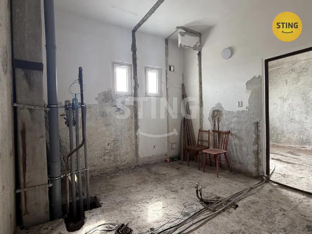 Byt se nabízí ve stavu se započatou rekonstrukcí. Byt je kompletně připravený již k budování všech svých obytných částí, demoliční práce jsou hotové.