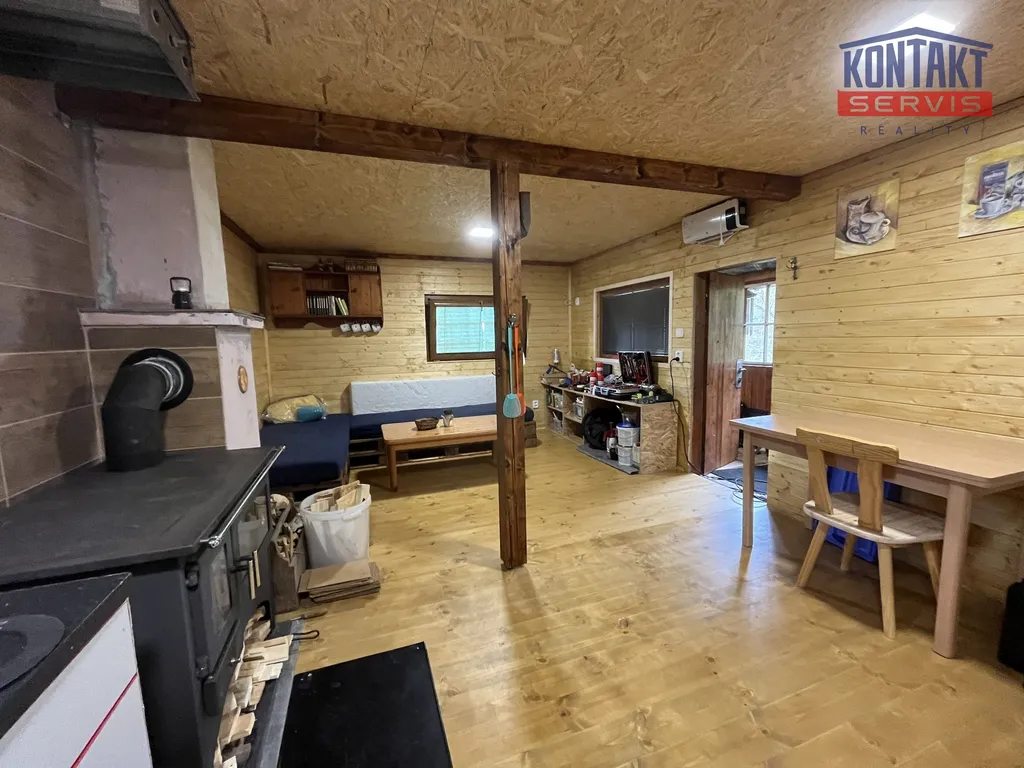 Chata disponuje praktickou dispozicí 3+kk s celkovou užitnou plochou 70 m² a je kompletně podsklepená – suterén tak nabízí skvělé možnosti pro skladování, dílnu, technické zázemí nebo vinný sklípek.