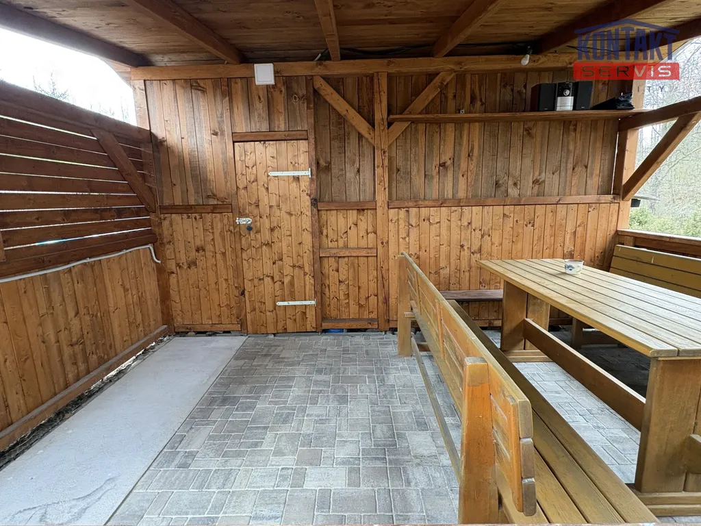 Součástí nemovitosti je také velká pergola (28 m2) s kůlnou = ideální prostor pro grilování, relax a současně i praktické místo pro uskladnění nářadí či zahradního vybavení či dřeva. Do pergoly je zavedena elektřina na osvětlení a dostatek zásuvek včetně kůlny. Dále je zde vybetonovaný základ na krb s udírnou.