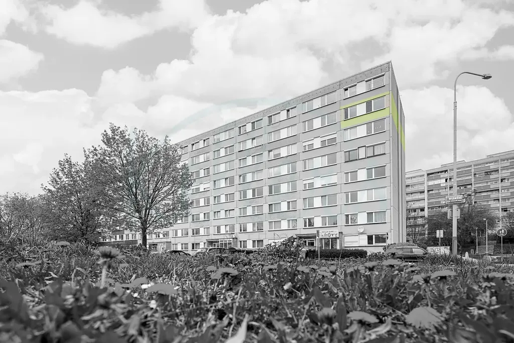 Byt o celkové podlahové ploše 93,43 m² se nachází v 6. nadzemním podlaží udržovaného panelového domu s výtahem. Velkým benefitem je promyšlené dispoziční řešení – dvě neprůchozí ložnice zajišťují dostatek soukromí, zatímco obývací pokoj s kuchyňským koutem tvoří přirozené centrum bytu. Jednotka nabízí nadstandardní množství úložných prostor – k dispozici jsou dvě vestavěné skříně, samostatná šatna i praktická komora. Součástí pronájmu je i sklep.