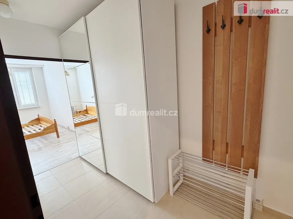Dumrealit.cz Vám zprostředkuje úplně nový, slunný, jižně orientovaný 2kk, 45m² +sklep, v osobním vlastnictví, v pátém patře panelového domu s výtahem. Byt je po kompletní, čerstvě dokončené rekonstrukci - budete první nájemníci. Dispozičně nabízí vstupní předsíň s velkou šatní skříní, ložnici s manželskou postelí a obývací pokoj s odděleným, plně vybaveným kuchyňským koutem. Dále pak koupelnu s vaničkou a sprchovým koutem a samostatné WC. V celém bytě jsou plovoucí podlahy nebo dlažba. Plastová okna jsou vybavené žaluziemi. Vstup zajišťují bezpečnostní dveře. Celý interiér je laděný v příjemných světlých odstínech.