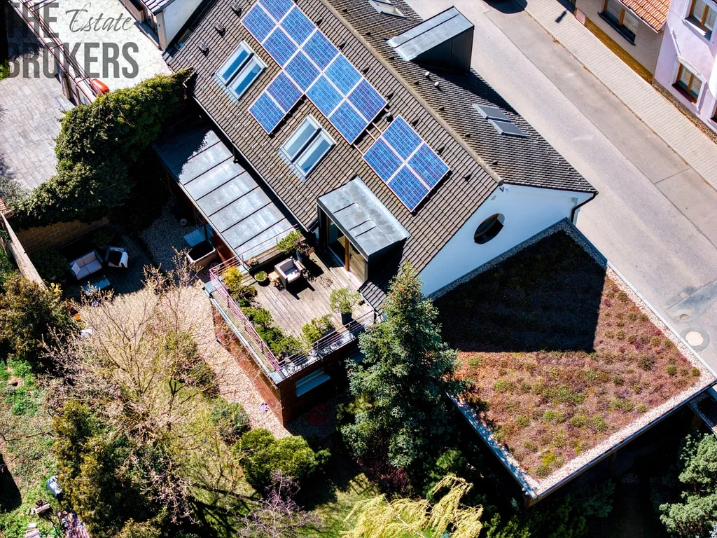 Každý detail tu má své místo – od měděných prvků, přes podlahové vytápění až po technologie, které dávají smysl i ekonomicky. Díky fotovoltaice a nastavení domu se provozní náklady pohybují výrazně níže, než byste čekali u nemovitosti této velikosti – kolem 6–7 tisíc měsíčně. To je přesně ten moment, kdy si uvědomíte, že luxus nemusí být drahý na provoz.