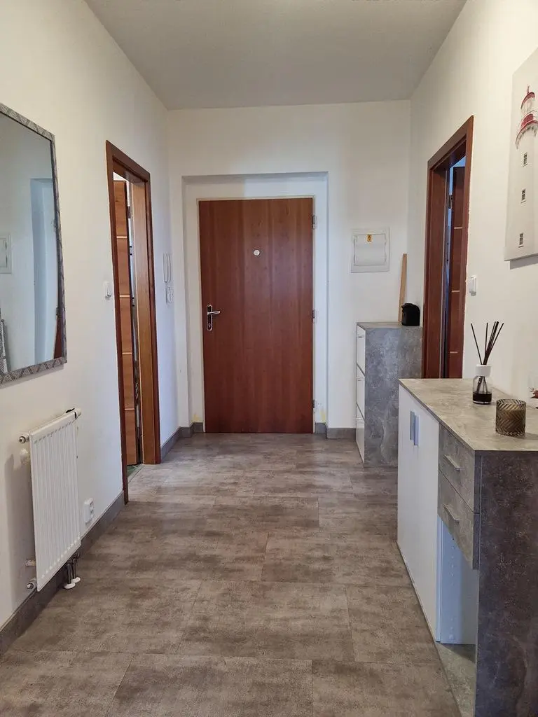 Podlahová plocha bytu je 68 m2, terasa 23 m2. K dispozici sklep, parkování před domem bez poplatku.