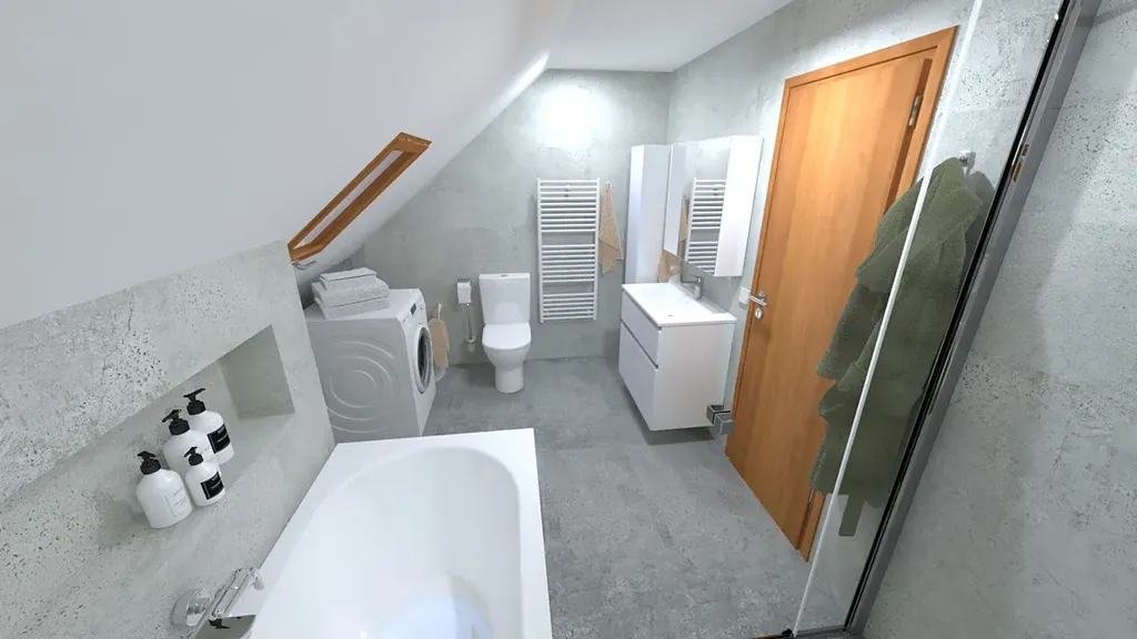 Dům je aktuálně napojen na elektřinu a obecní vodovod. Plynová přípojka a kanalizace se nachází před domem a je možné dům bez problémů napojit. V projektu se počítá s elektrickým kotlem na vytápění a ohřev vody.