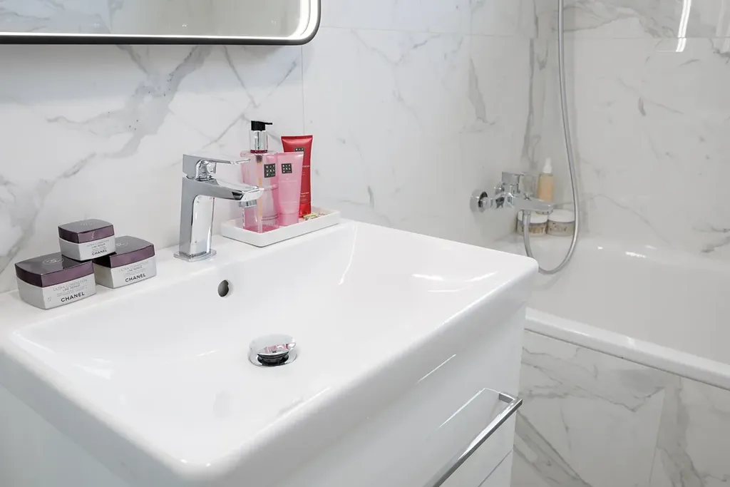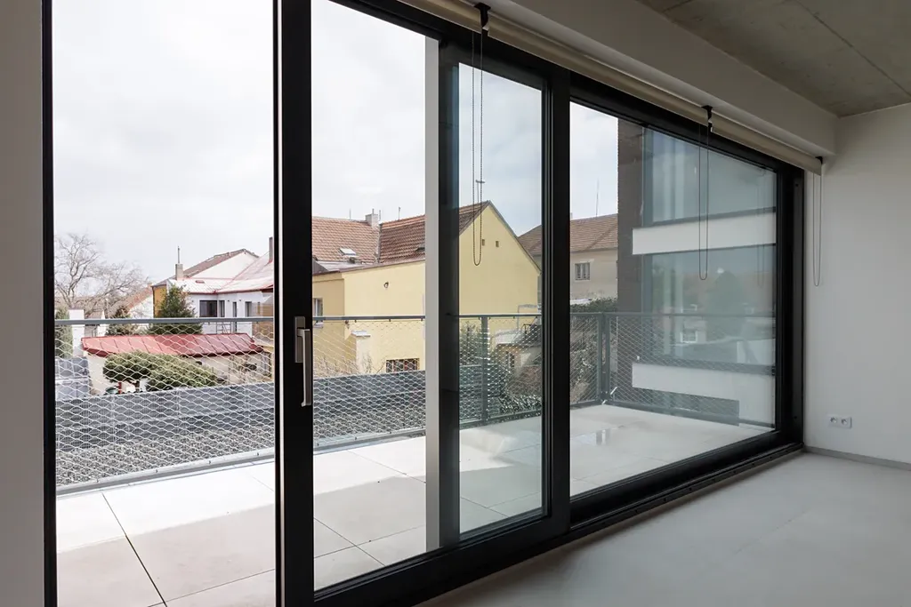 Moderní 2+kk o velikosti 70 m² s terasou 8 m². Hlavní předností bytu je prostorné uspořádání. Byt se skládá ze dvou obytných místností a čtyř samostatně oddělených místností, které slouží jako příslušenství – vstupní zádveří s šatní skříní, toaleta, šatna a technická místnost s pračkou a sušičkou značky Haier. Z ložnice, situované do klidného vnitrobloku, je přístup na terasu. Okna v obývacím pokoji jsou vybavena elektricky ovládanou fólií na bázi tekutých krystalů, která umožňuje regulaci světla a soukromí. V oknech do ulice jsou instalovány elektricky ovládané diskrétní PDLC fólie – čiré/mléčné sklo, které umožňuje regulaci světla a soukromí. K bytu náleží prostorná sklepní kóje. Dále je možné pronajmout garážové nebo venkovní parkovací stání.