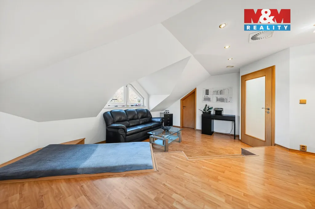 Součástí domu je i wellness zázemí – vnitřní bazén a sauna pro celoroční relaxaci. Komfort bydlení doplňuje rekuperace a praktická dvojgaráž.