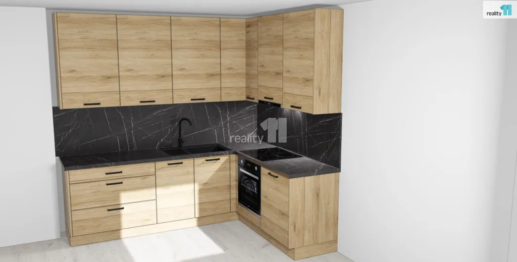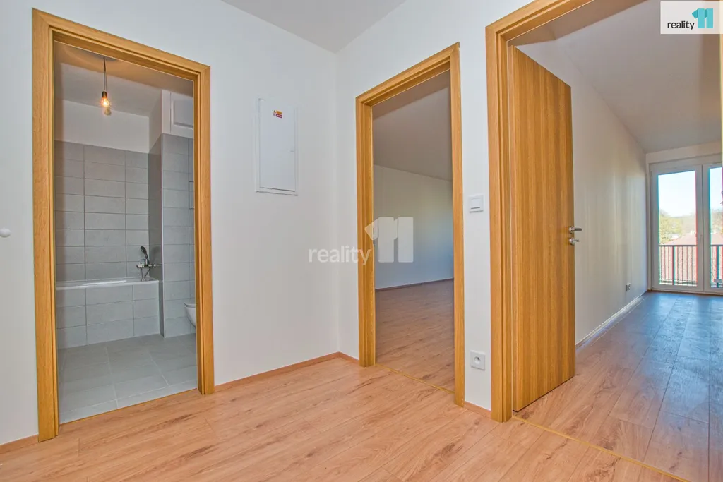 Technické vybavení: Izolační trojskla VEKRA, podlahy laminátové, hnědé obložkové zárubně a dveře, nízká energetická náročnost domu (třída B), dům je zateplen. Byt bude vybaven moderní kuchyňskou linkou dle uvedené vizualizace, což umožňuje budoucímu majiteli rychlé nastěhování, případně výhodu při budoucím pronájmu, v koupelně vana, místo pro pračku a sušičku, WC.
