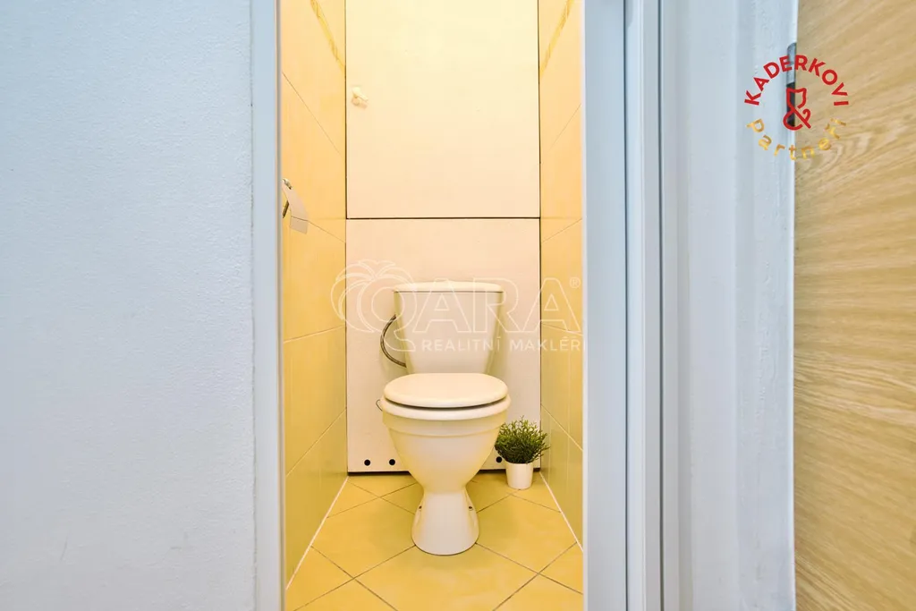 Vedlejší pokoj má přímý vstup na lodžii (cca 4,5 m²) s výhledem na travnatou plochu a klidné náměstí ideální jako ložnice či dětský pokoj. K pohodlí přispívá koupelna s vanou a oddělená toaleta. V bytě se navíc nachází i praktická komora (cca 2,8 m²), která poslouží jako šikovný úložný prostor. K bytu náleží také sklepní kóje (cca 2 m²).