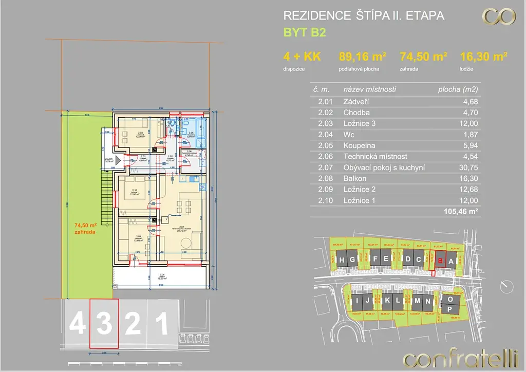 Moderní byt 4+kk se zahrádkou ve Zlíně – Štípě označený jako B2