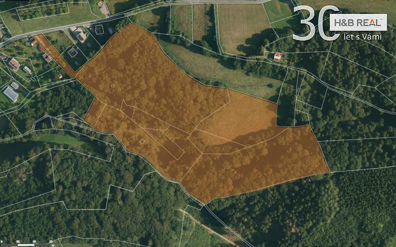 Pozemek tvoří kombinace lesa a luk, což zajišťuje klidné prostředí a dostatek soukromí. V minulosti se na části pozemku nacházela stavba. Souvislá plocha o výměře 1 398 m² (2 parcely) je dle územního plánu vedena jako plocha pro individuální bydlení.