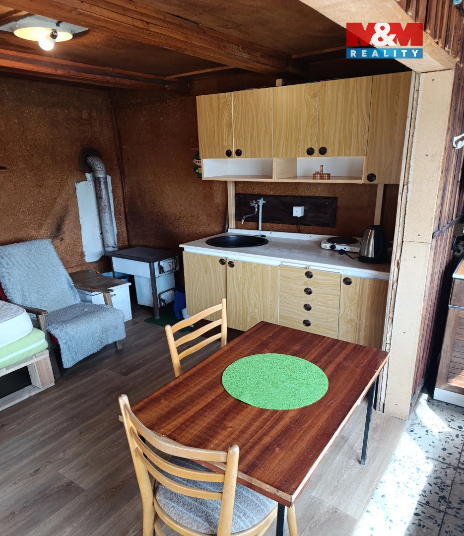 Na zahradě rostou ovocné stromy, je zde dostatek místa na pěstování i posezení. Parkování je možné přímo na pozemku. Chata je podsklepená.