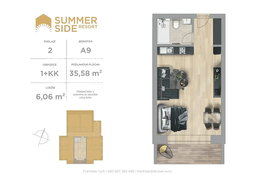 Součástí ceny je také sklepní kóje umístěná přímo v objektu, která poskytuje praktický úložný prostor. Pro uložení lyží a dalšího zimního vybavení bude v domě k dispozici také společná lyžárna.