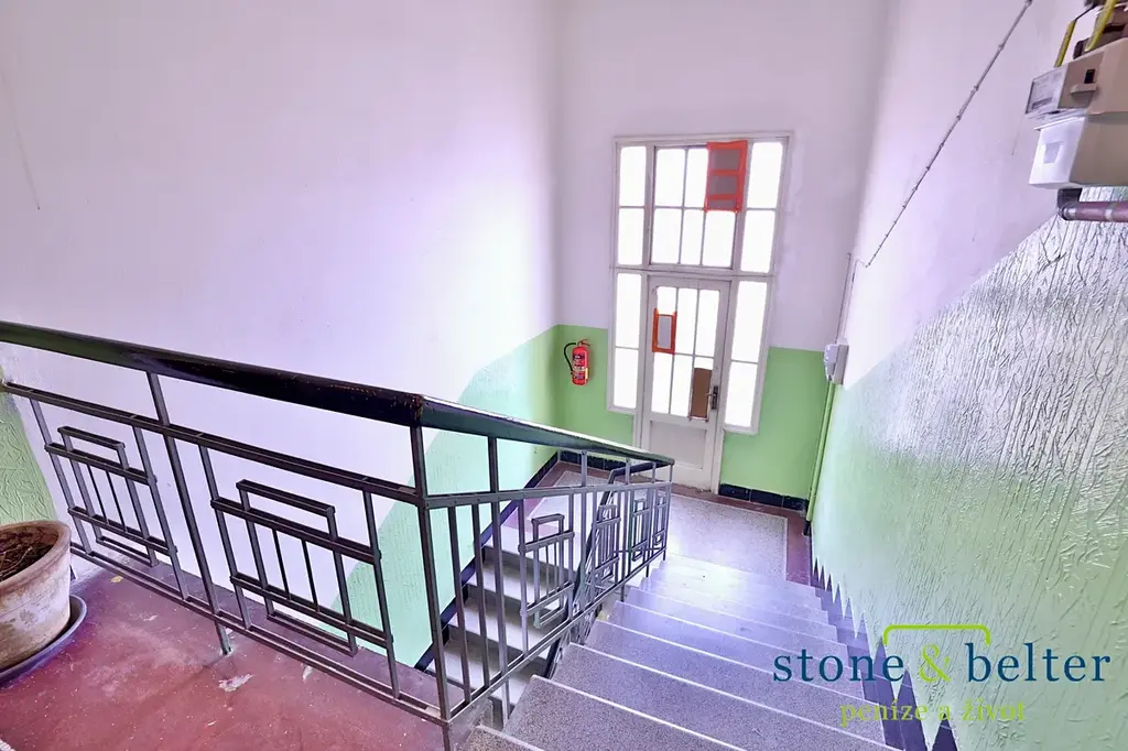 Jednotka se nachází ve 4. patře domu bez výtahu. Výhodou je orientace na východ do klidného vnitrobloku, která zajišťuje dostatek světla a zároveň minimální hluk z ulice. Poslední patro navíc nabízí větší míru soukromí bez sousedů nad bytem.