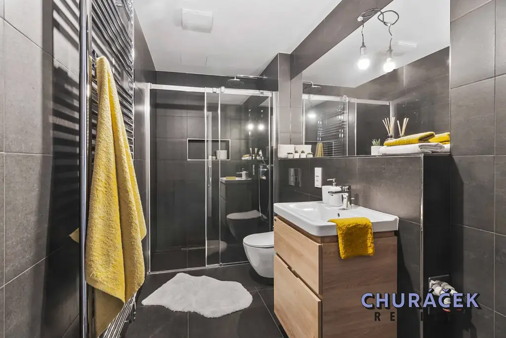 Apartmán má celkovou podlahovou plochu 56 m² a skládá se z obývacího pokoje s kuchyňským koutem a přímým vstupem na lodžii, samostatné ložnice, koupelny s vanou a toaletou a vstupní předsíně. Byt se prodává kompletně vybavený, včetně moderní kuchyňské linky, vestavěných spotřebičů a nábytku na míru. Vytápění je zajištěno tepelným čerpadlem s možností dálkového ovládání přes mobilní aplikaci. Vše je zcela nové, připravené k okamžitému užívání bez nutnosti dalších investic.