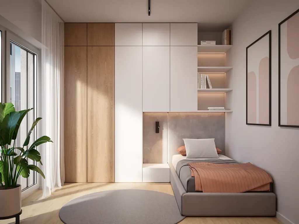Byt je součástí pasivního projektu, který klade důraz na zdravé a úsporné bydlení. Samozřejmostí je řízené větrání s rekuperací, které zajišťuje stálý přísun čerstvého vzduchu bez nutnosti větrání okny. Komfort v průběhu celého roku zvyšuje také podlahové vytápění a systém dochlazování, díky nimž je v interiéru příjemné klima v zimě i létě. Výhodou pasivního standardu jsou zároveň nižší provozní náklady.