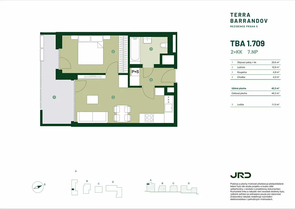 2+kk 42,2 m2 s lodžií | 7. nadzemní podlaží