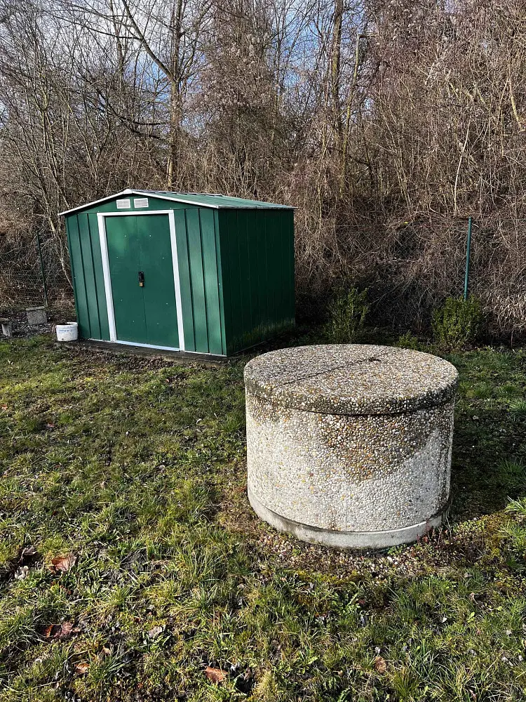 Na krajním pozemku stojí mobilheim o velikosti 2+1 ( kuchyň, pokoj, ložnice, koupelna). Je zde také zahradní domek. Vlastní studna na pozemku, elektřina, septik. Tento pozemek je oplocen pletivem a jsou zde vysazeny túje.