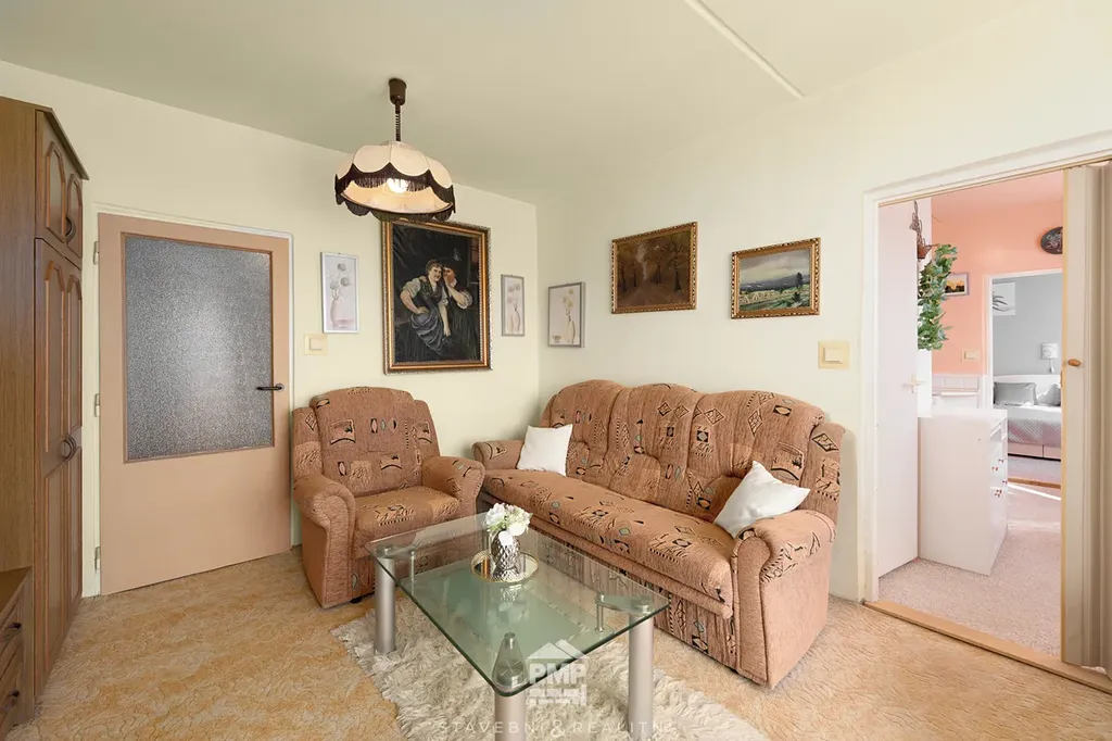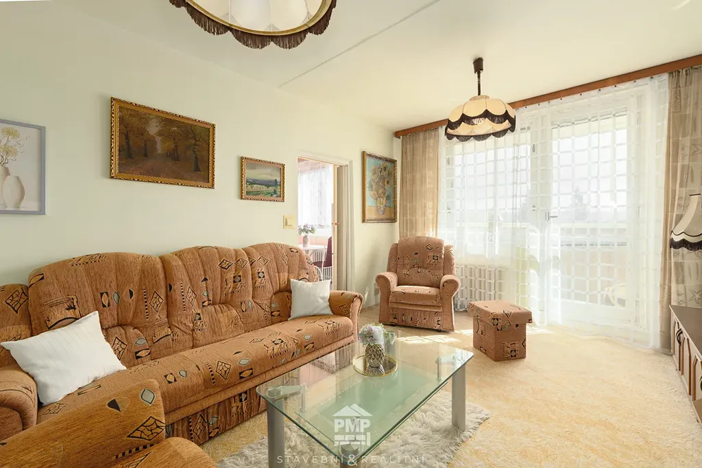 Byt je v pečlivě udržovaném stavu, vhodný k okamžitému užívání. Rozvody instalací jsou původní, jádro umakartové. Dispozice nabízí pohodlné rodinné bydlení – obývací pokoj s výstupem na lodžii, samostatnou kuchyň, dva neprůchozí pokoje a předsíň s prostornou komorou, která nabízí dostatek úložného prostoru. Další úložné možnosti zajišťuje sklepní kóje. Koupelna je vybavena vanou a umyvadlem, WC je samostatné. K bytu náleží také sklepní kóje, ideální pro uložení věcí.