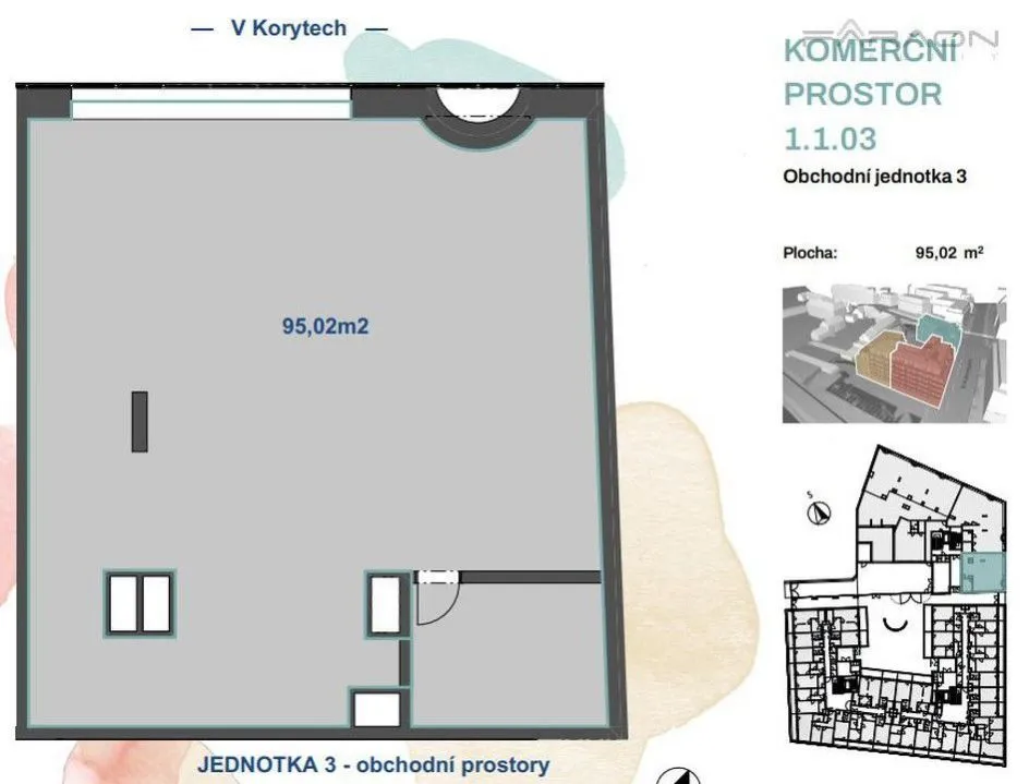 Prostor se nabízí ve stavu shell and core, nachází se hned vedle supermarketu a je vhodný pro multifunkční využití.