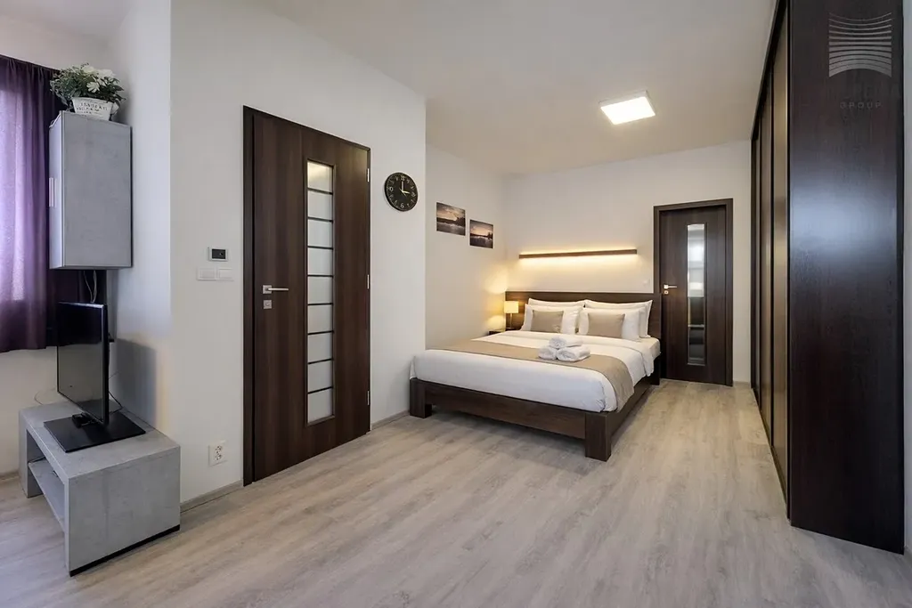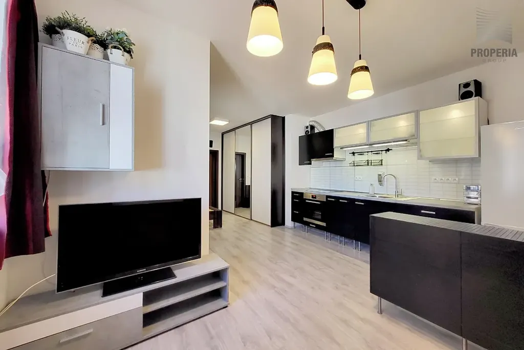 Byt je z velké části vybaven nábytkem i zařízením a to včetně kuchyňské linky s vyobrazenými spotřebiči. Jeho komfort dotváří prostorná koupelna se sprchovým koutem, prostorem pro pračku/sušičku i odděleným WC. Dostatek úložných prostorů ve vestavěných skříních. Ty jsou k dispozici i v předsíni.