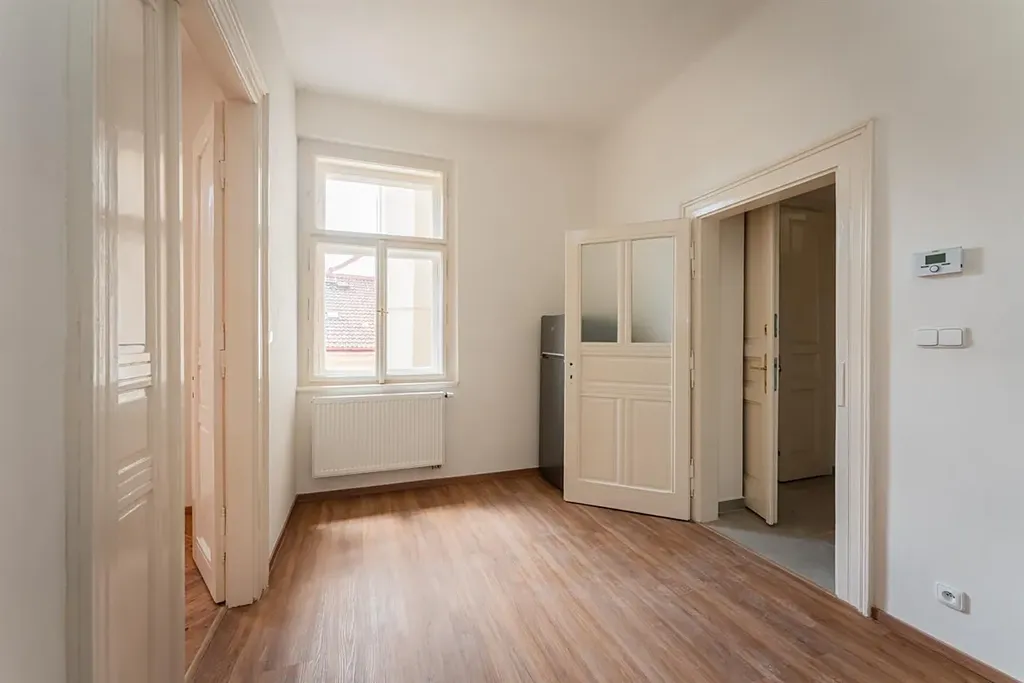 Zrekonstruovaný byt 2+kk (o celkové ploše 34,48m2), s orientací do klidného vnitrobloku, je situovaný v 2.patře (3.NP) reprezentativní budovy s výtahem, v oblíbené lokalitě Praha 2 Nové Město. Interiér bytu je nezařízený a dispozičně nabízí vstupní předsíň (2,77m2), kuchyň (11,91m2), ze které je vstup do ložnice (16,45m2) spojené s obývacím prostorem. Kuchyň je vybavená novou kuchyňskou linkou včetně spotřebičů: lednice s mrazákem, varná deska a elektrická trouba. Moderní koupelna má vstup z předsíně a disponuje sprchovým koutem, toaletou a pračkou.