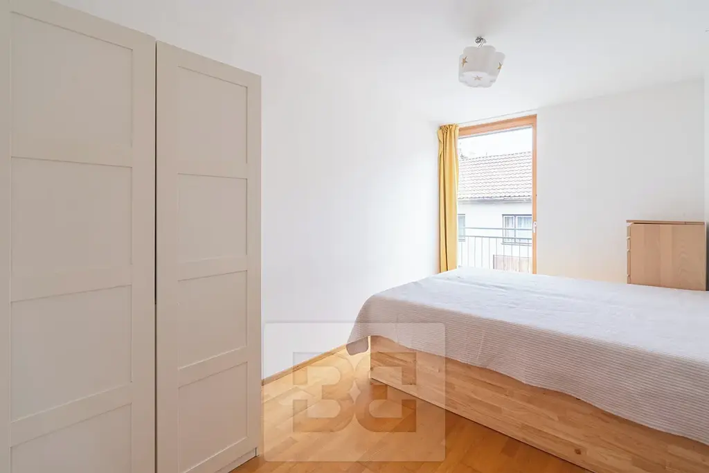 Ložnice jsou situovány na opačnou stranu bytu. Mají výměru 12,7 m² a 11,9 m² a jejich okna směřují do klidné ulice. Klimatizace je instalována jak v obývacím pokoji, tak v hlavní ložnici. Klimatizací se dá i topit. Ložnice je chladnější a klimatizace zde pomůže pokoj vytopit.