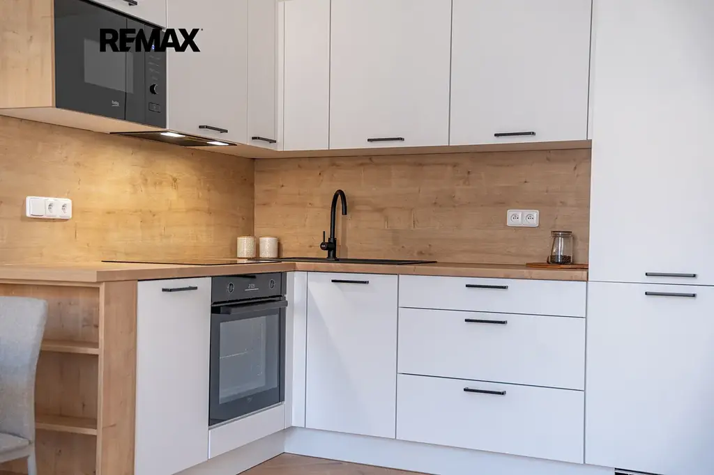 Byt je částečně zařízen (vestavěná skříň, kuchyňský kout).