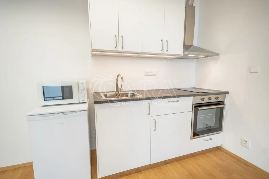 V bytě je 2 roky stará kuchyňská linka s varnou deskou, troubou a digestoří. Dále je zde lednička, mikrovlnná trouba a v koupelně pračka, která je součástí pronájmu.